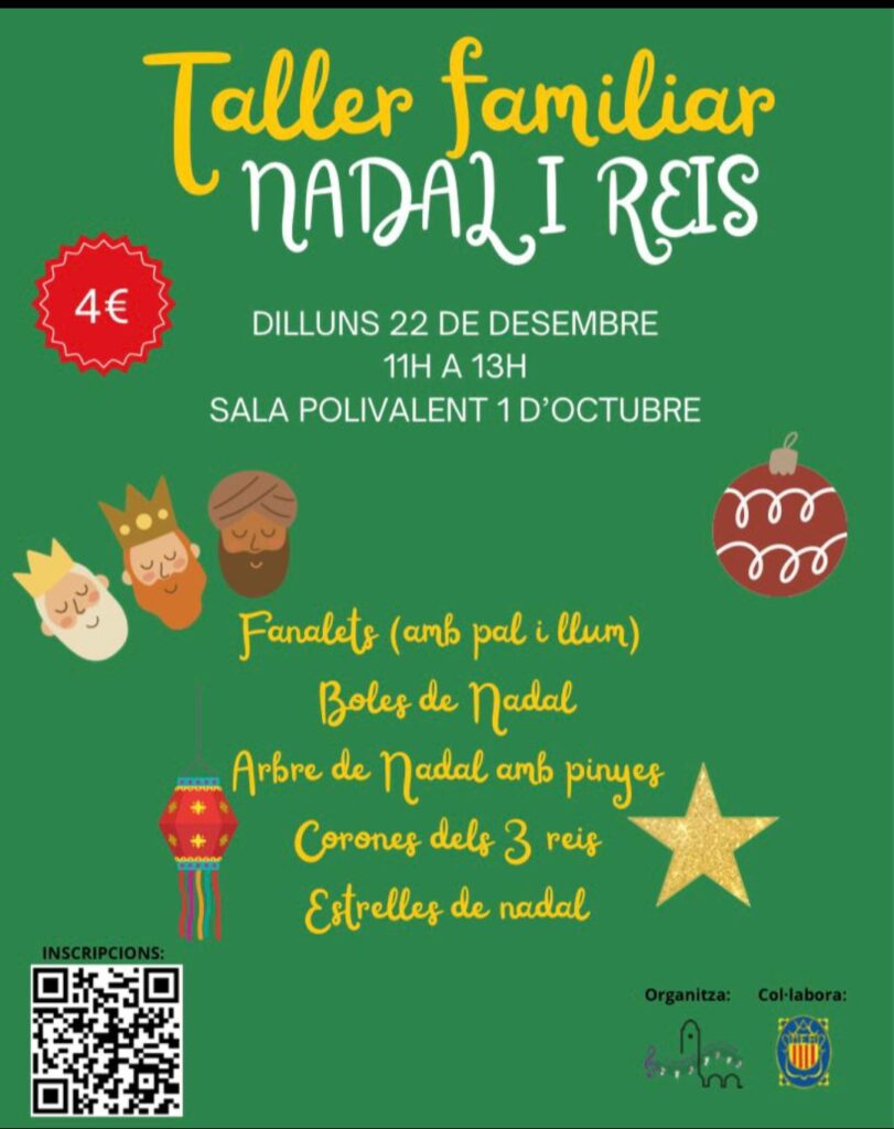 11.00 a 13.00 h Taller familiar Nadal i Reis Comissió de Festes d’Amer