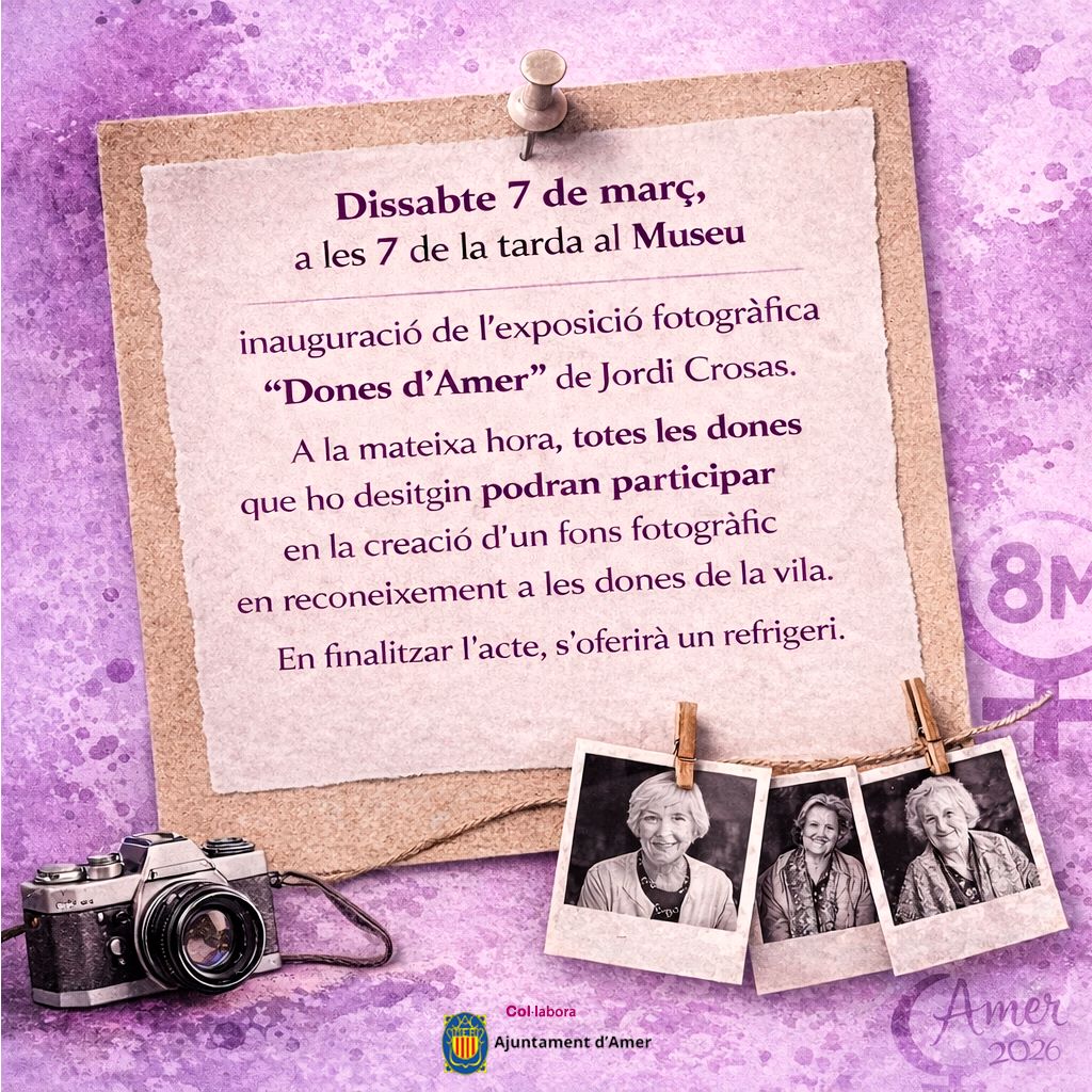 19.00 h Museu, inauguració de l’exposició fotogràfica “Dones d’Amer” de Jordi Crosas.