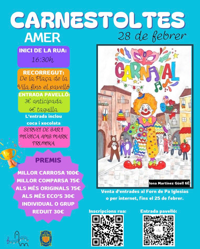 Carnestoltes a Amer el 28 de febrer. Inici de la rua a les 16.30 h amb recorregut de la Plaça de la Vila fins al pavelló.