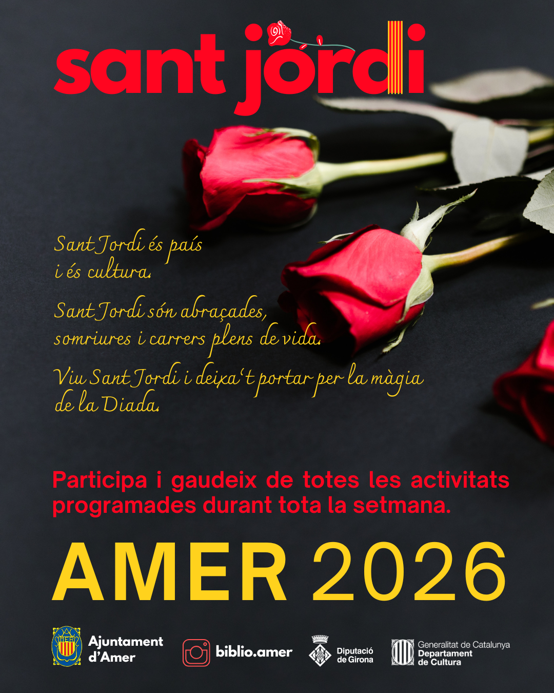 Dimecres 15Biblioteca d’Amer17:15 taller infantil “FES-TE LA GORRA DE SANT JORDI”, a càrrec de DJOCS.Inscripcions a partir del 7 d’abril . 15 places disponibles. Participació fins al 16/04/2026.CONCURS JOVE LITERARI, FOTOGRÀFIC I DE DIBUIX DEL TER-BRUGENTOrganitzat per l’Oficina Jove de la Selva.Premi per categoria: targeta-regal valorada en 100 € de l’Abacus.Adolescents i joves de 12 […]