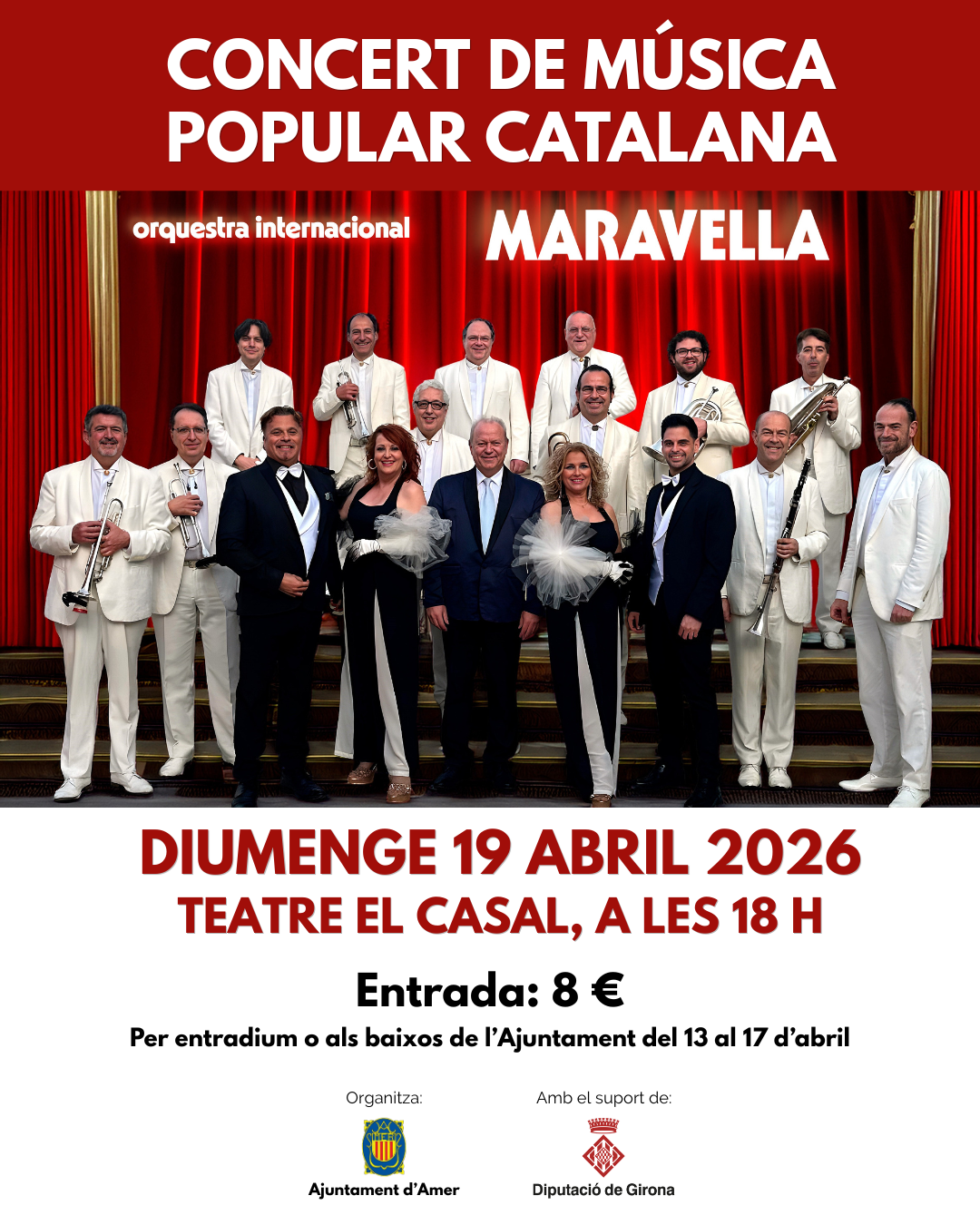 Diumenge 19 d’abril, a les 18 h al Teatre El Casal d’Amer. Entrada 8 € a entradium i oficines Ajuntament Aquest 2026 marca una fita excepcional: els 75 anys de trajectòria de l’Orquestra Internacional Maravella, una de les formacions musicals més emblemàtiques de Catalunya. L’Orquestra Internacional Maravella és molt més que una formació musical: és […]