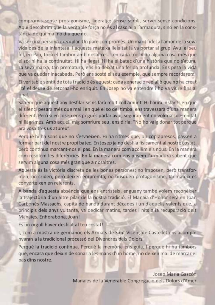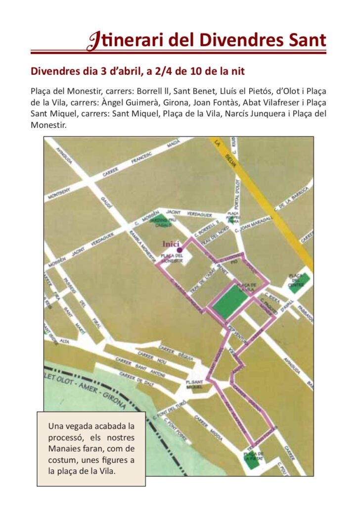 - 21:30 h (22:00 aprox.) Processó penitencial amb Manaies, Agrupació Musical i Cor.
