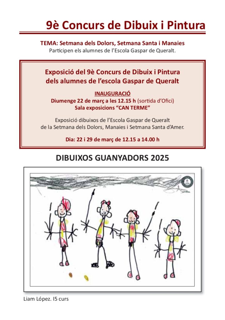 - Exposició del 9è Concurs de dibuix (22 i 29 de març).