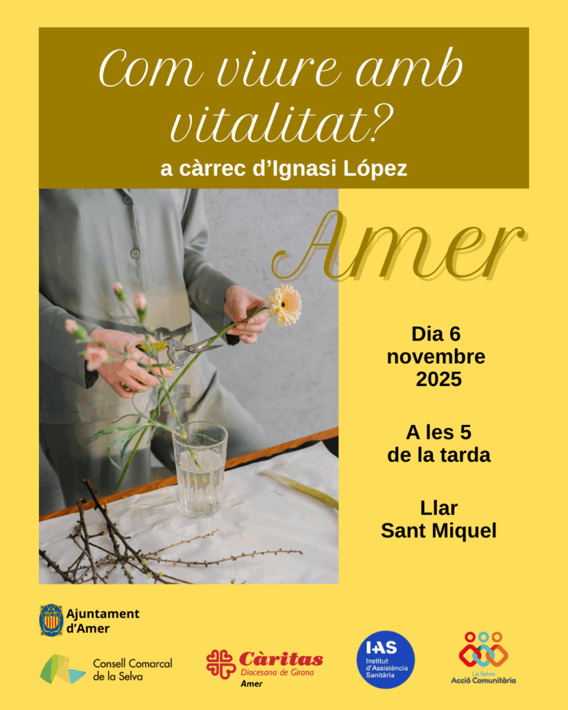 El proper dijous 6 de novembre de 2025 a les 17 h, la Llar Sant Miquel d’Amer acollirà la xerrada “Com viure amb vitalitat?”, a càrrec d’Ignasi López.